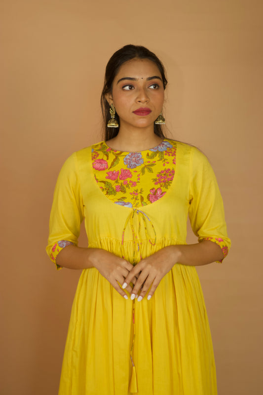 Orange Printed Chudi Sleeves Mul Gathered Kurta set