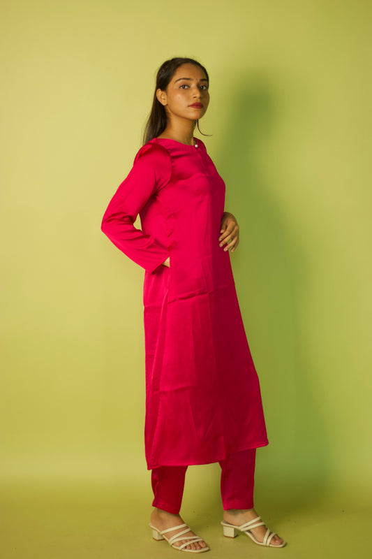 Pink Chudi Sleeves Mul Gathered Kurta set
