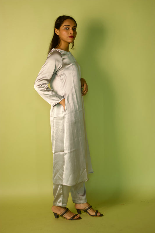 Gray Satin Glam Kurta Set