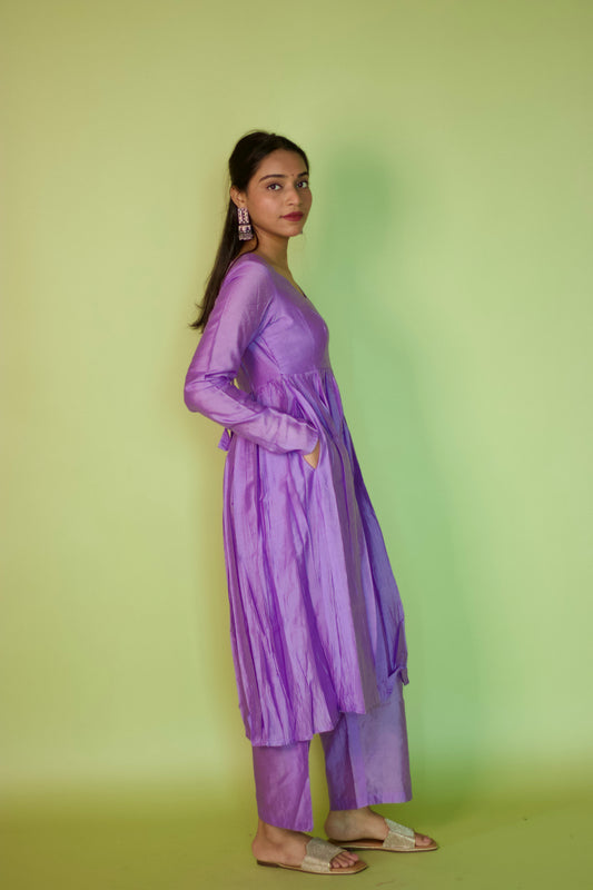 Sold outLilac Chanderi 16 Panel Anarkali set