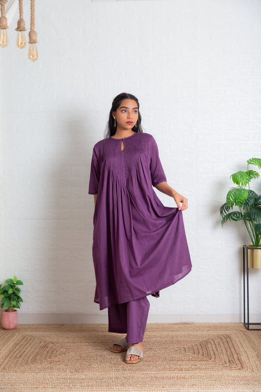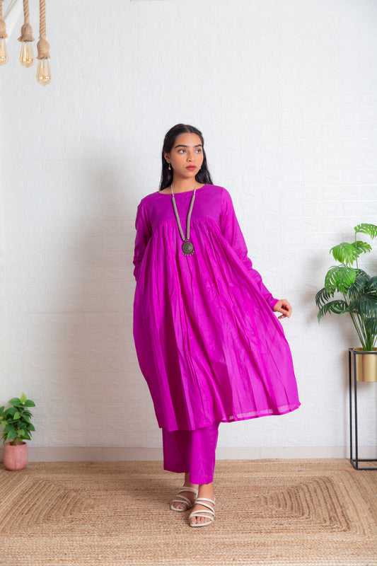 Purple Chudi Sleeves Mul Gathered Kurta set