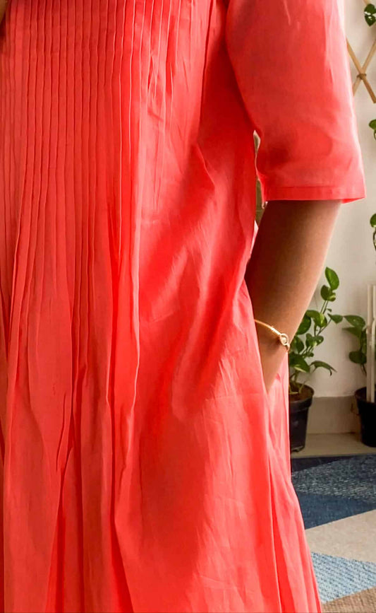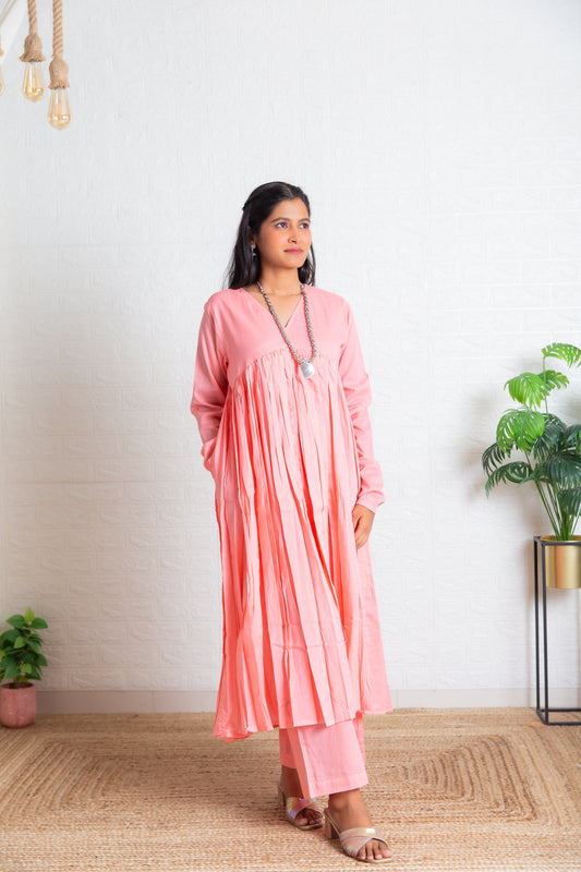 Sold outPink Mul Pleated Kurta Set