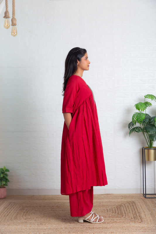 Sold outRed Mul Gathered Kurta set