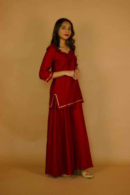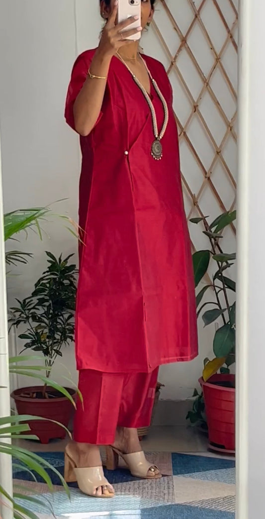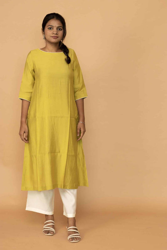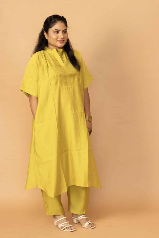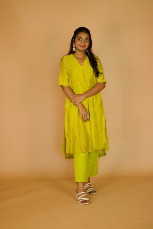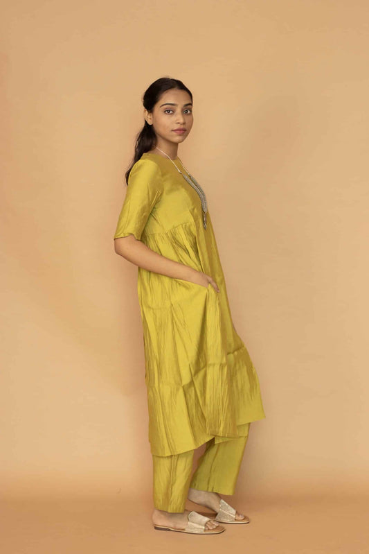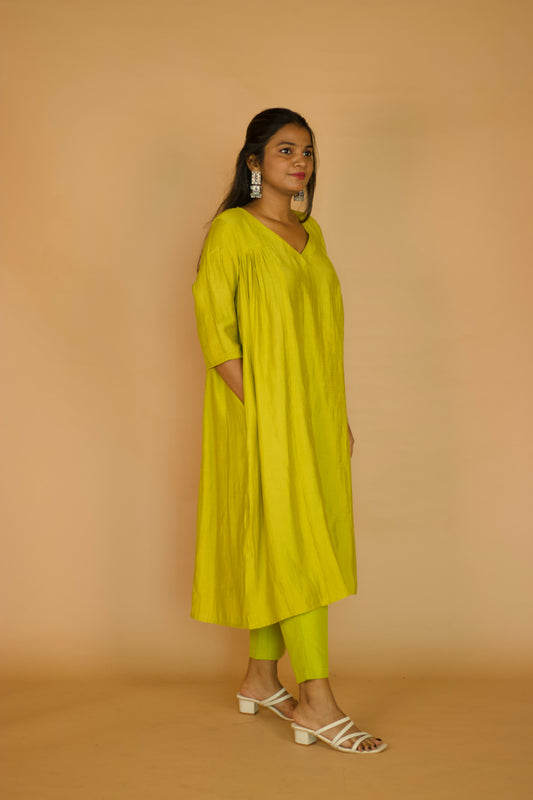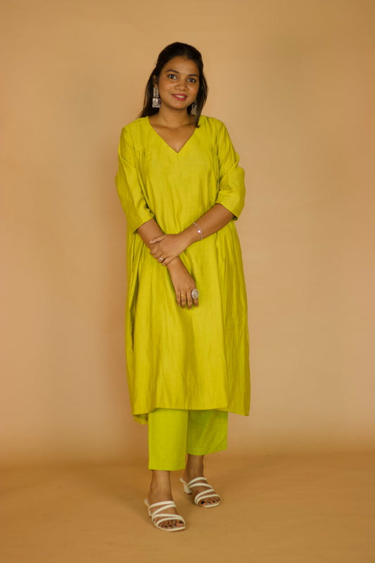 Lime Gold Chanderi Kaftan Pleated Kurta set