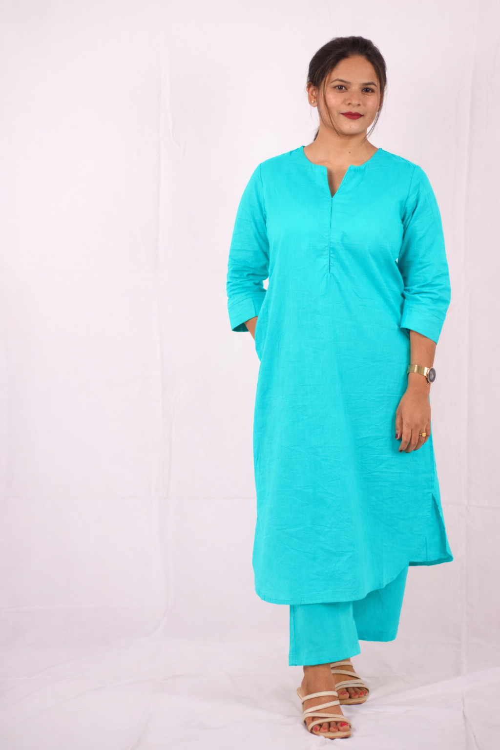 Aqua Blue Cotton Sukoon Kurta Set