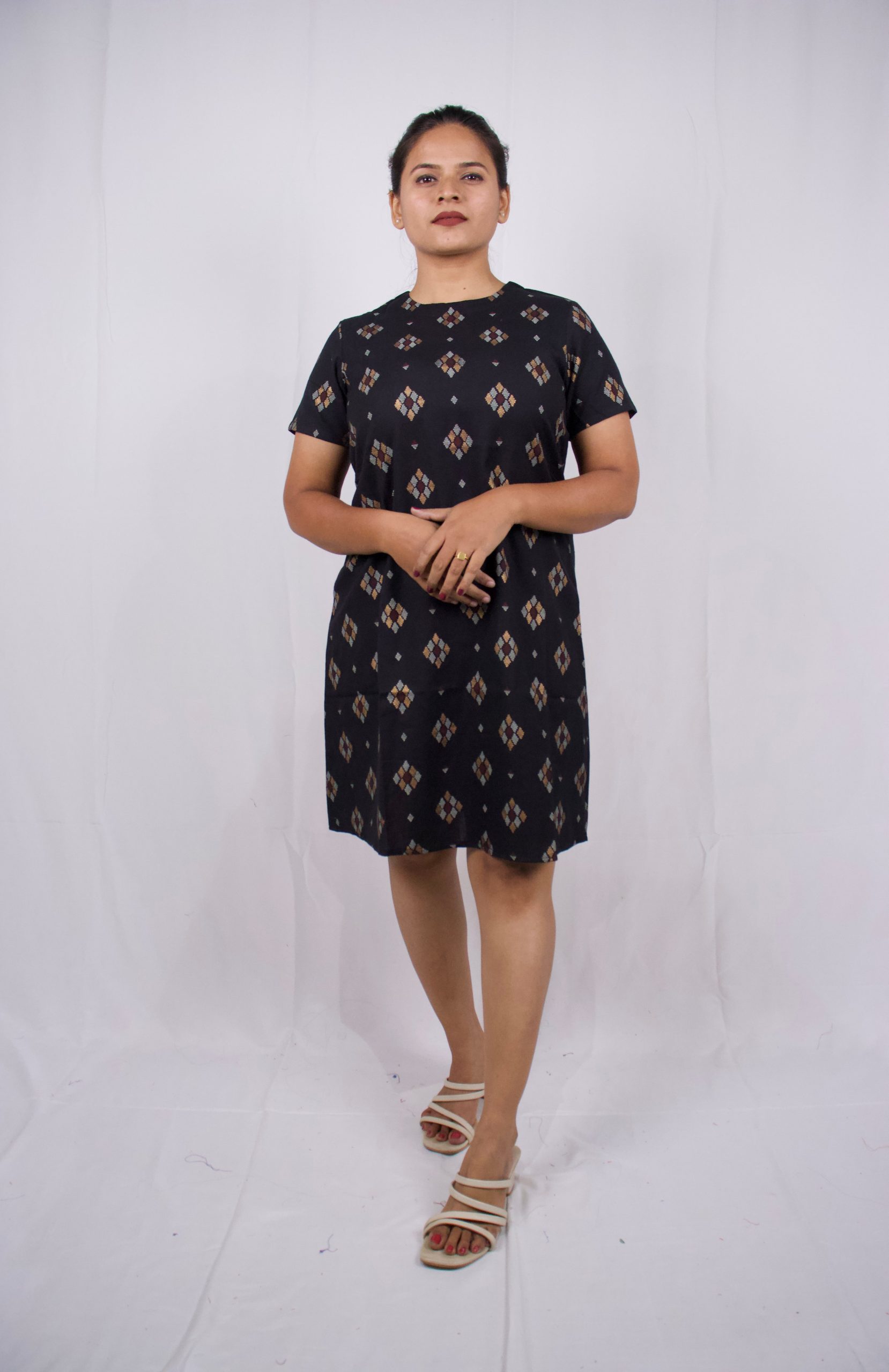 Elevate your casual style with this charming black printed short dress, crafted in pure cotton for all-day comfort. Featuring a closed neckline and a stylish back keyhole detail, it offers a perfect blend of modesty and flair. Designed with one functional pocket for added practicality, this dress is ideal for evening outings, spring getaways, or laid-back casual wear. Its breathable fabric and thoughtfully tailored silhouette make it a wardrobe essential that pairs effortlessly with sneakers, flats, or heels.